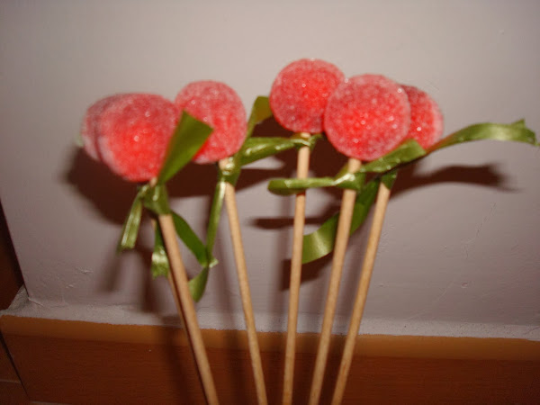 Os cuelgo unas fotillos a ver si os gustan como han quedado mis flores de gominolas!!! Por lo menos nos endulzamos la tarde, jijiji