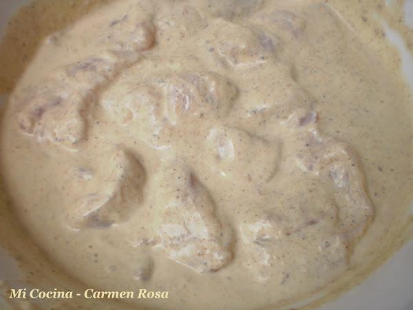 Introducir en ésta mezcla las pechugas de pollo troceadas, dejando macerar.