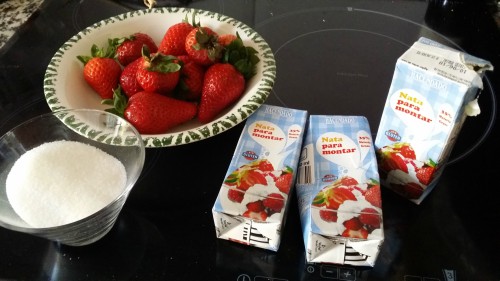 5. Unimos la preparación de las fresas a la nata (crema de leche)