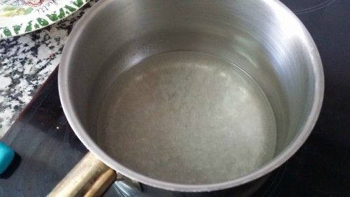 2. Poner un cazo al fuego con el agua y el azúcar. Cocer durante unos 5 minutos.