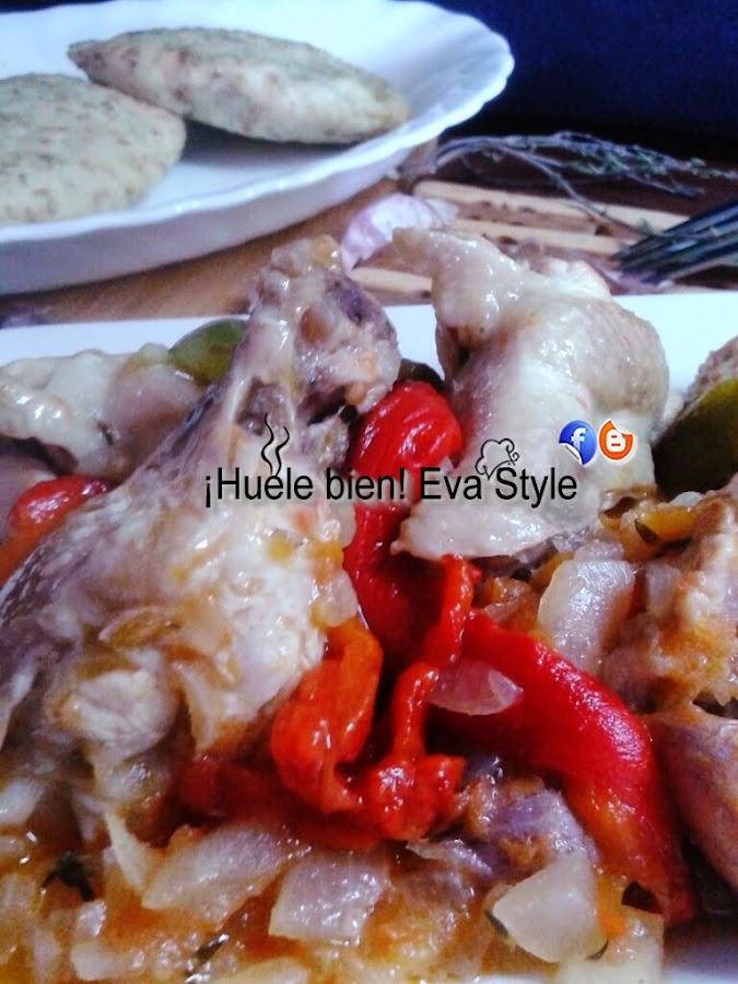 4.- Pelamos los pimientos, le quitamos las semillas. cortamos en tiras finas y servimos con los muslitos de alitas al chilindrón.