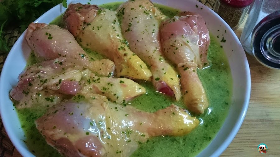1.- Lavamos los muslitos, los secamos con papel de cocina y le quitamos los restos de plumas que puedan tener.