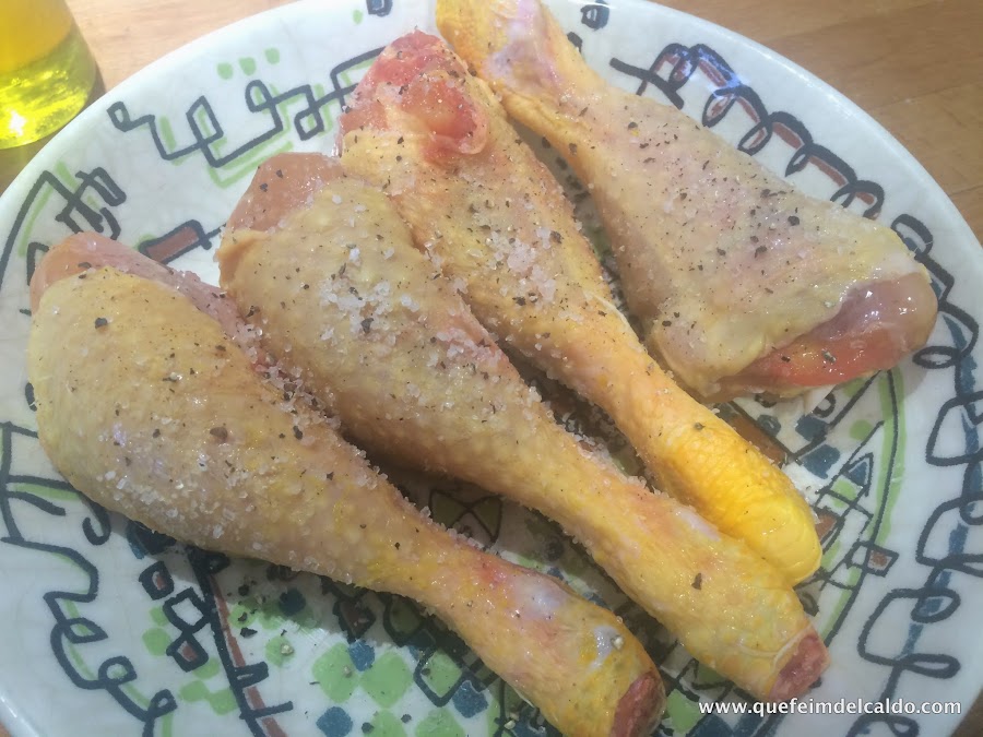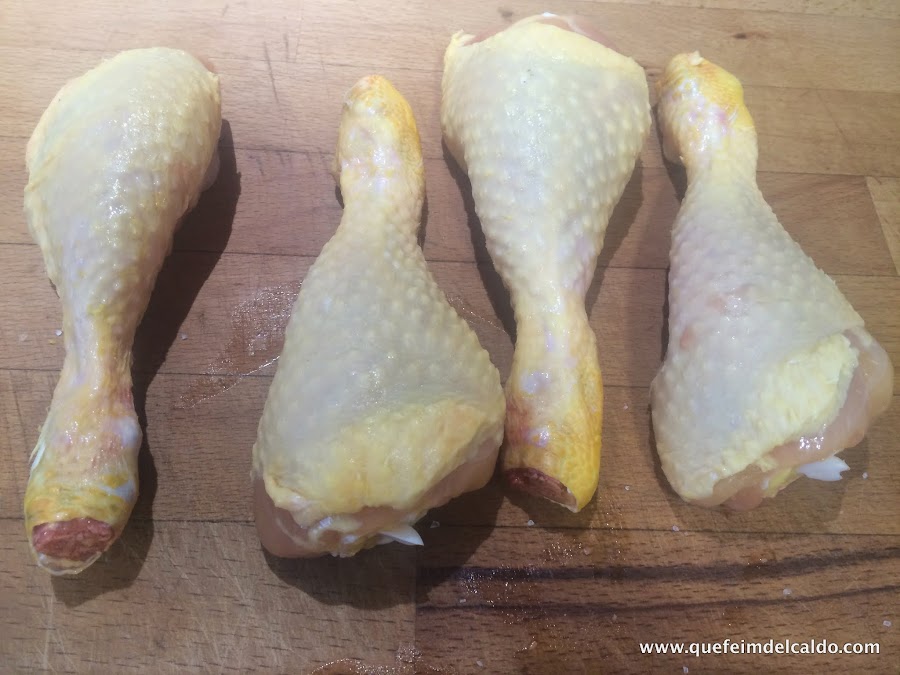 Hoy de nuevo los protagonistas son los muslitos de pollo, es bastante recurrido cocinar esta parte del pollo, el pollo que nos gusta comer en casa es pollo de corral, es este caso es pollo de corral ecológico, un poquito más caro que el pollo industrial pero tremendamente más bueno.
