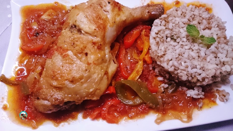 Servimos los muslos con una guarnición de arroz con quinoa.