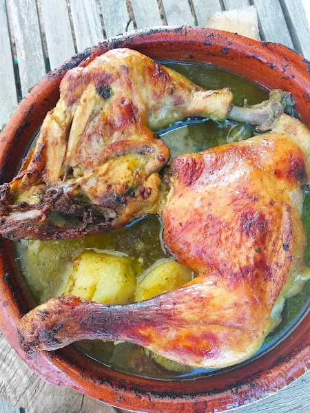 Queda con bastante salsa y las patatas tienen que quedar blandas y con todo el sabor del pollo y de la salsa, están buenísimas!!