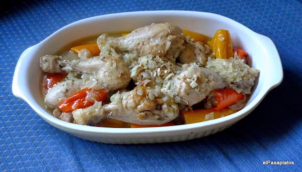 El sabor suave de la carne de pollo, se impregna del sabor especial de los pimientos guisados con la carne de las salchichas.