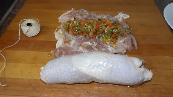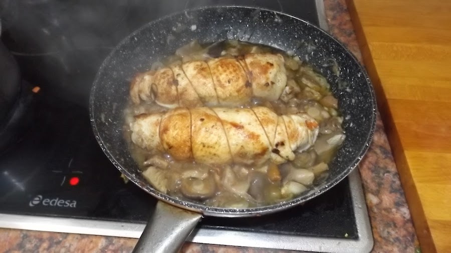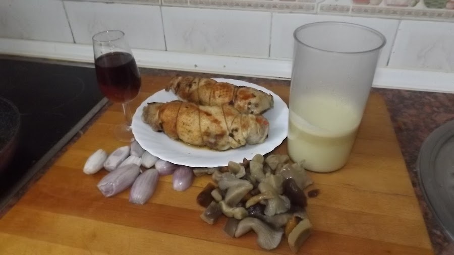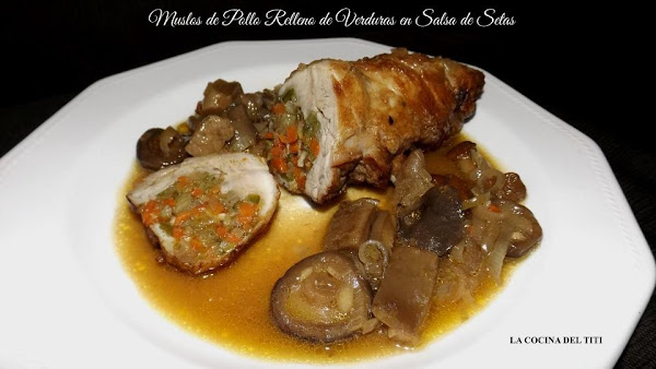 Vamos a realizar unos muslos enteros deshuesados lo rellenaremos de un variado de verduras que ahora en la receta vereis que lleva. Y para la salsa le vamos a meter unas setas variadas con chalotas reducida en un buen amontillado del marco de Jerez.