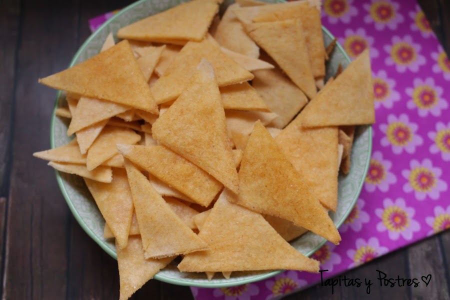 Tenía muchas ganas de hacer esta receta. La vi en una revista thermomix de hace un año y la fui dejando hasta que hace unos días encontré la misma receta en el blog Chismes y Cacharros donde en lugar de freír, horneaban los nachos.