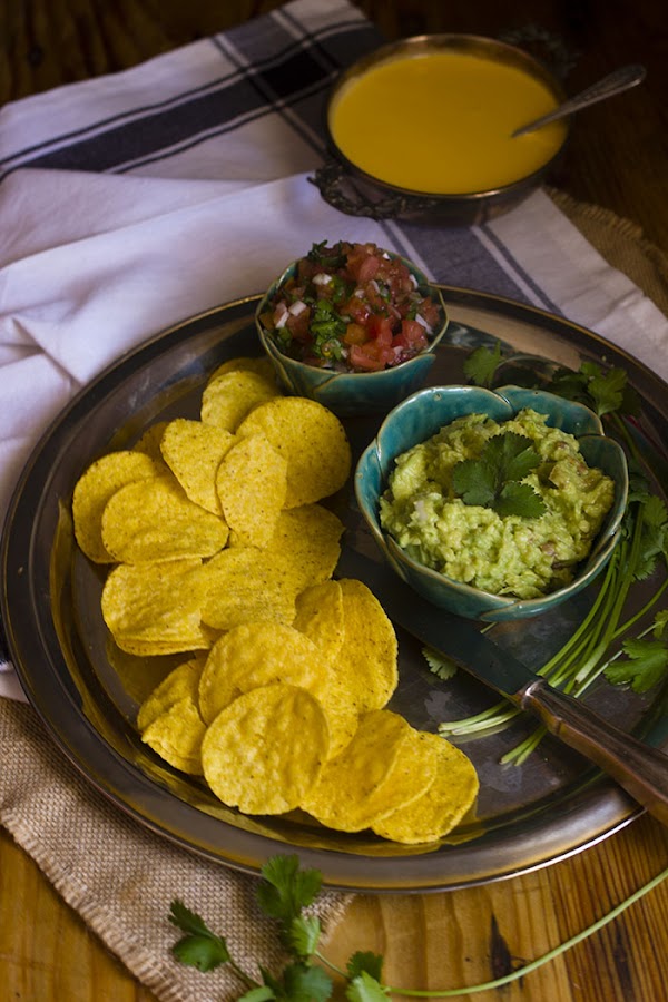 GUACAMOLE CON PICO DE GALLO Y SALSA DE QUESOIngredientes: