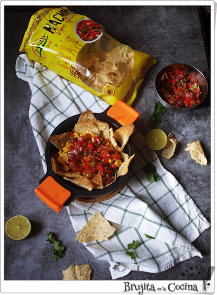 Los nachos que he usado son de Zanuy, en este caso son los White XL, nachos hechos con maiz blanco y no estan especiados para así potenciar el sabor de lo que le pongas. Además son ideales para acompañar dips o como os los presento, porque aguantan todo al ser mas grandes puedes coger más cantidad y eso siempre es algo bueno. Les he descubierto gracias a Degustabox en su caja de este mes, si te apetece recibir también en casa la Degustabox puedes entrar en su pagina y suscribirte, y si usas este código WIXHU la primera caja te costará solo 7,99€ incluyendo los gastos de envío.
