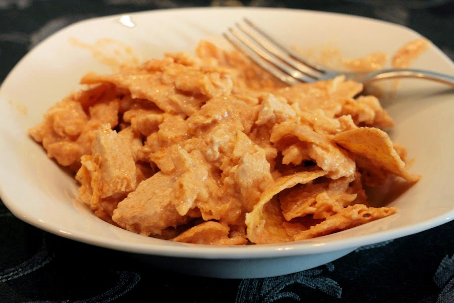 Necesitareis: Pechugas de pollo, tomate frito, cubitos de caldo de carne, comino en polvo, pimienta, sal, nata (crema de leche) liquida (crema de leche), yogur griego natural (yogurt natural sino encontráis el griego), queso mozzarella o queso blanco rallado pero suave, nachos o totopos.
