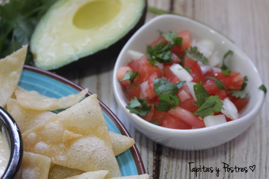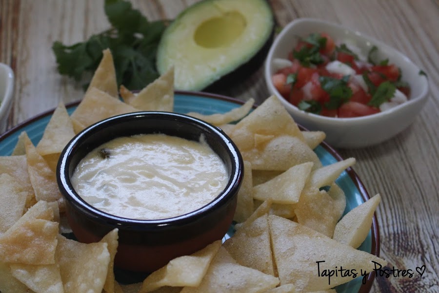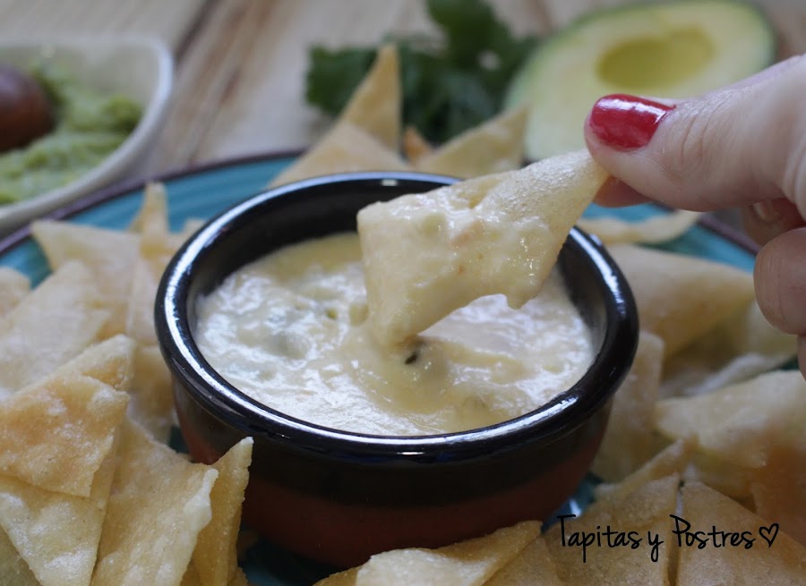 Para redondear el reto del grupo he preparado una salsa de quesos, que, madre mía, como está de buena. Pero si no queréis pasaros de calorías, también os dejo un guacamole y una salsa pico de gallo. Para elegir la que más os guste.