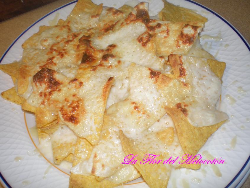 En Barcelona, en la calle Provença, justo enfrente de "La Pedrera", había hasta el año pasado, una pizzeria americana. Se llamaba "Chicago Pizza Pie Factory"?, era una maravilla. Te sacaban las pizzas en la sartén y tenían una masa gordita y crujiente, y encima le ponían tantos ingredientes que con una pequeña comíamos mi marido y yo. Fue allí donde probé los nachos por primera vez. Me gustaron tanto que cuando vi las tortitas de maíz en el supermercado, decidí comprarlas e intentar hacer lo que habíamos comido allí. Evidentemente no es lo mismo. Aquellos llevaban una especie de salsa y los míos no, pero como nos gustaron a mi manera, no he dejado de hacerlos y es una aperitivo rápido, socorrido, original y bueno.