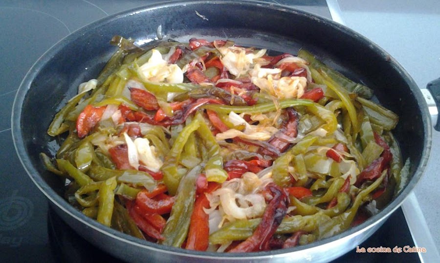 Ponemos a calentar una sartén con aceite y vamos friendo las verduras por tandas, las vamos sacando y reservamos.