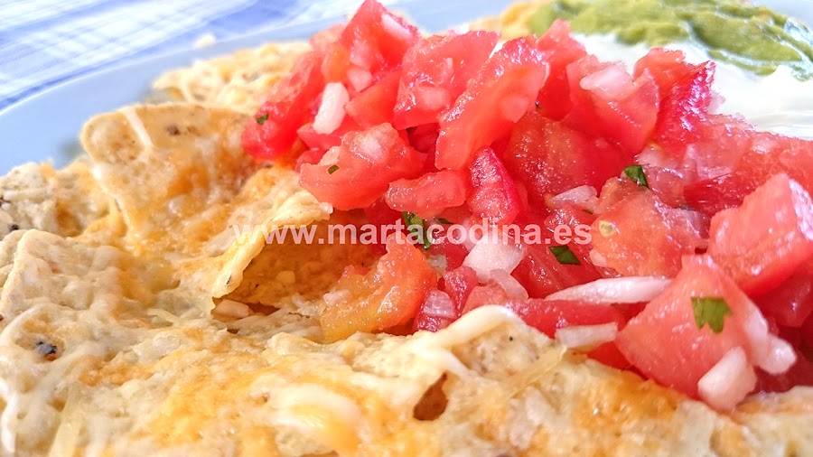Ponemos las salsa encima de los nachos con el queso derretido, a modo de los colores de la bandera de Mexico.