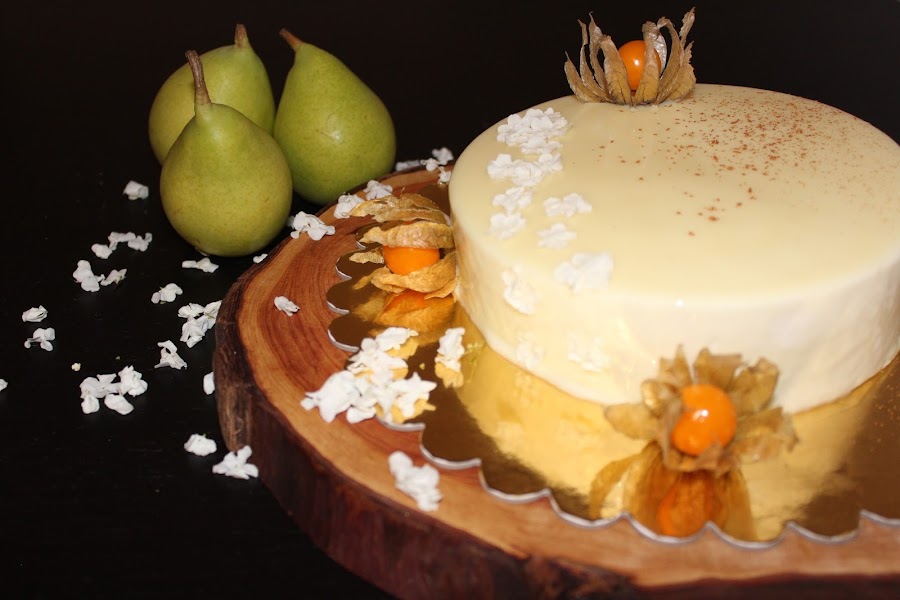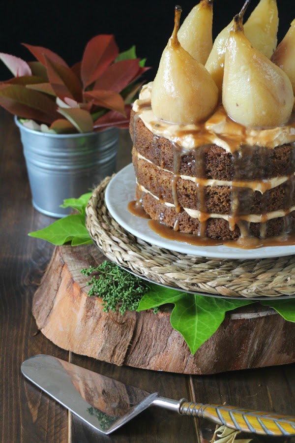 Es una receta elaborada porque consta de varios pasos en su preparación: los bizcochos de pera, la mousse de caramelo, la peras en almíbar y la salsa de toffee o caramelo salado, y con un resultado espectacular y súper sabroso.