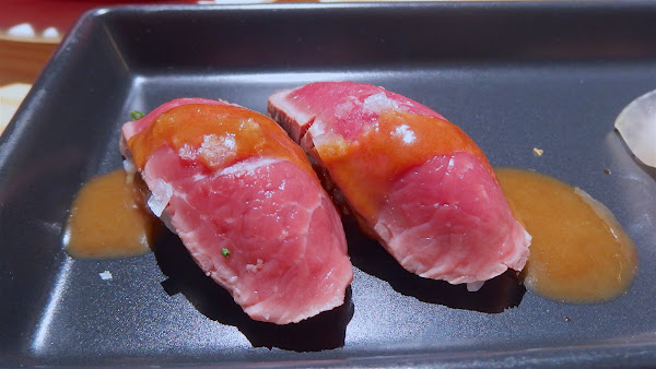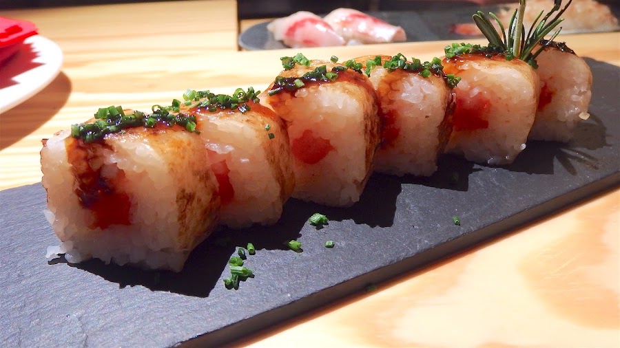 Al inicio de la comida vemos como preparan unos makis que sirven a otros clientes pero a nosotros no nos los habían apuntado en la comanda y, con lo antojadizos que somos, tuvimos que pedirlo. Makis de lechal.