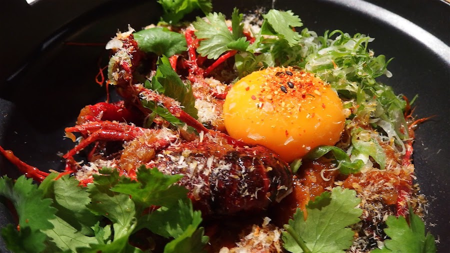 Y de un bocado con textura tan delicada en boca pasamos a el wonton de gamba con una textura muy crujiente.