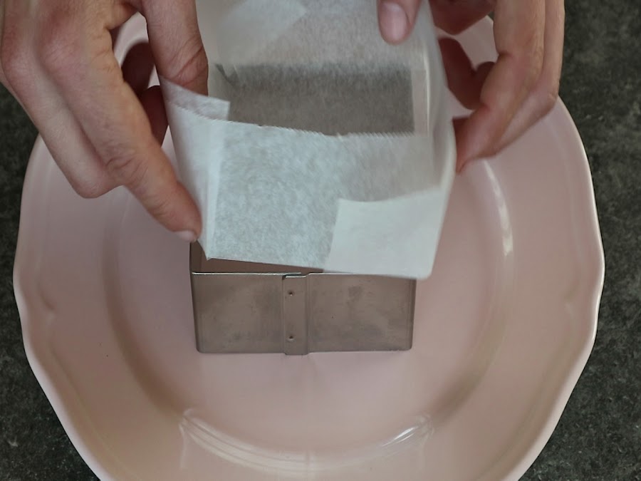 Ahora cogemos un molde de metal cuadrado de 10 cm.