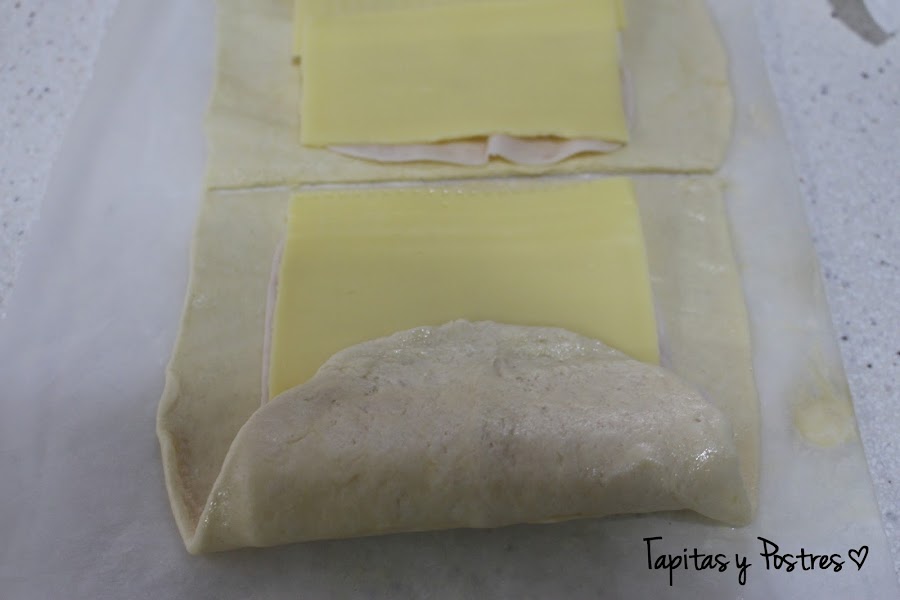 Encima el queso y cerramos. Fijaros como se hace, un tercio al centro y luego el otro tercio encima.