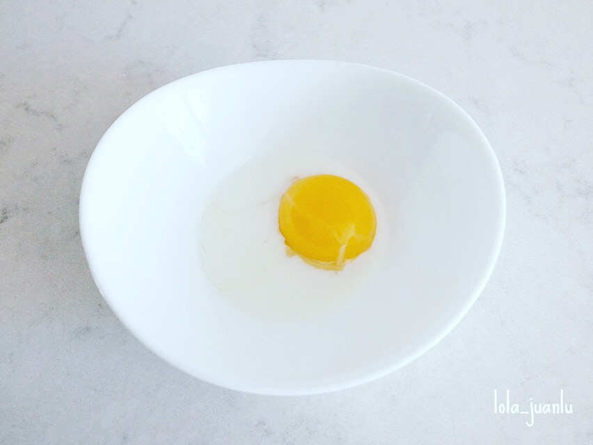 Colocamos un bol con agua caliente en la parte baja del horno y precalentamos a 200ºC con calor arriba y abajo. Cascamos un huevo y echamos en un cuenco, o solo la yema, añadimos un chorreoncito de leche y batimos.
