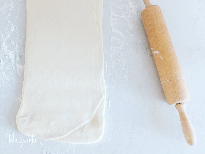 Repetimos la operación por tercera vez, destapamos la masa, la colocamos de manera que nos mire, extendemos, doblamos, tapamos y dejamos reposar 15 minutos.