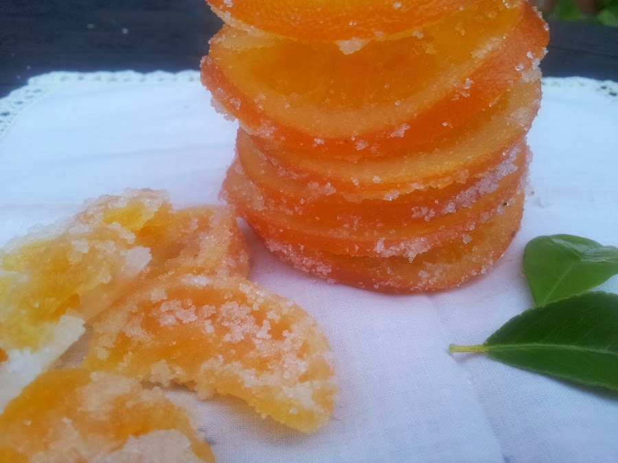 Veréis, en un par de días máximo, cómo las rodajas se van secando y ya no cogen más azúcar.