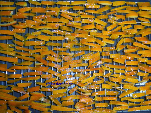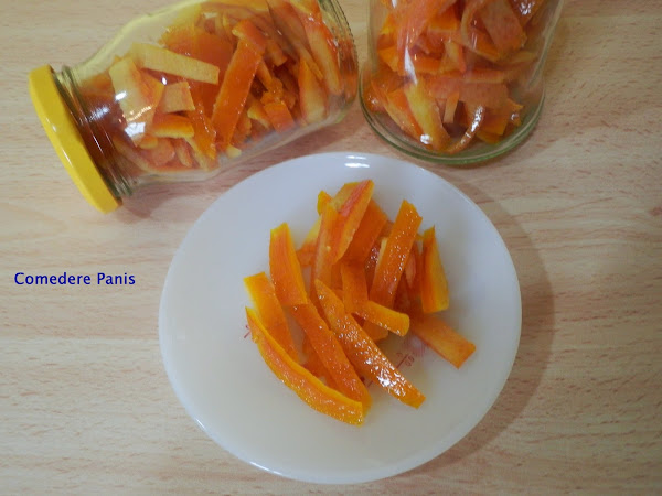 En esta receta te muestro como confitar las pieles de la naranja aunque tu puedes hacerlo en casa con cualquier cítrico, el año pasado lo hice con limón y quedé muy contenta.
