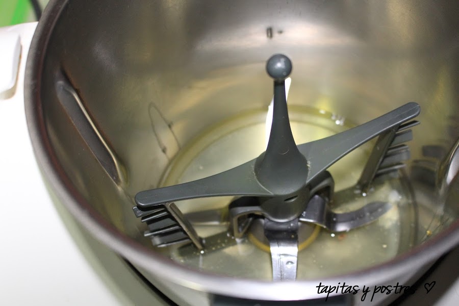 Ponemos las claras en el vaso de la batidora con la mariposa.
