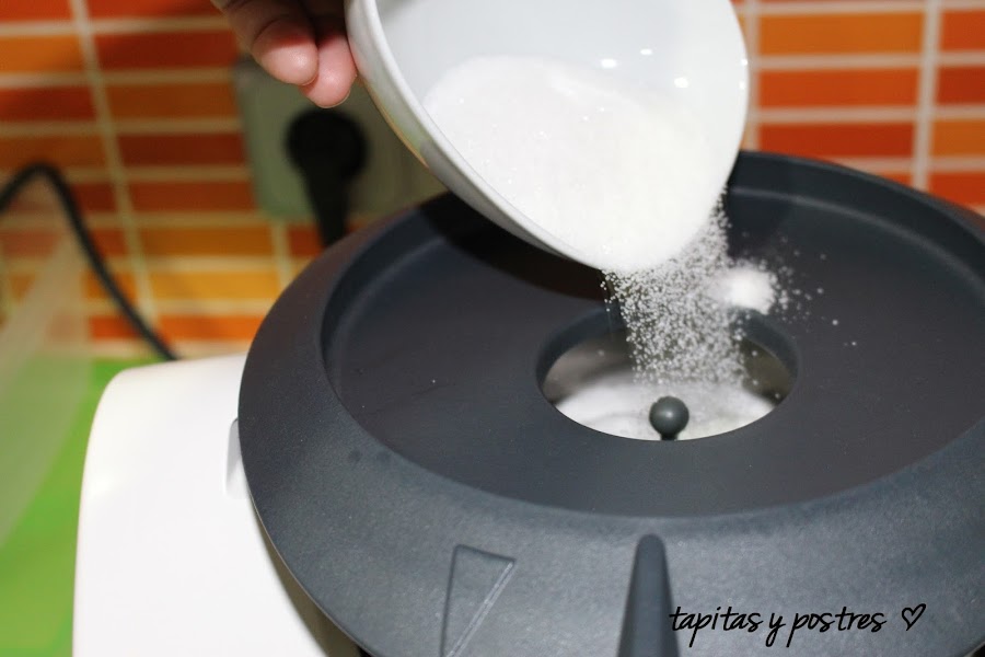 Y con la máquina en marcha añadimos el azúcar poco a poco. Las reservamos en un bol.