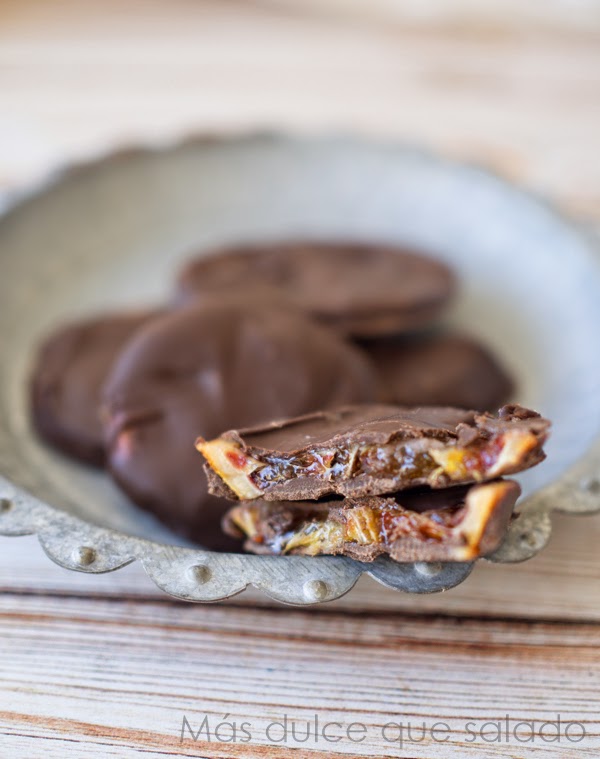 Las que he usado para esta receta han venido directamente de Valencia, regalo de mi hermana. Hemos intentado tomarlas en zumo pero la verdad es que nos han resultado muy ácidas, por lo que las hemos tenido que mezclar con naranja común o con zumo de mandarina. Sin embargo me han parecido estupendas para caramelizarlas y usarlas en bizcochos o como os enseño en este post, cubiertas de chocolate. Deliciosas!!