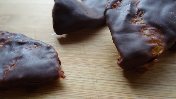 Aquí es donde creo que he hecho algo mal, por que hay partes de naranja que han quedado sin cubrir, no sé si es por que el chocolate estaba demasiado caliente y no se ha "pegado" bien a la naranja o que ha pasado (si hay alguna experta en la sala que se pronuncie!)