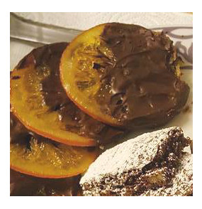 Una vez frías las naranjas confitadas, las vamos bañando en el chocolate y dejándolas secar en papel de hornear para que las podamos despegar después. Una vez a temperatura ambiente y bien secas, las podemos guardar en la nevera para que endurezca el chocolate.