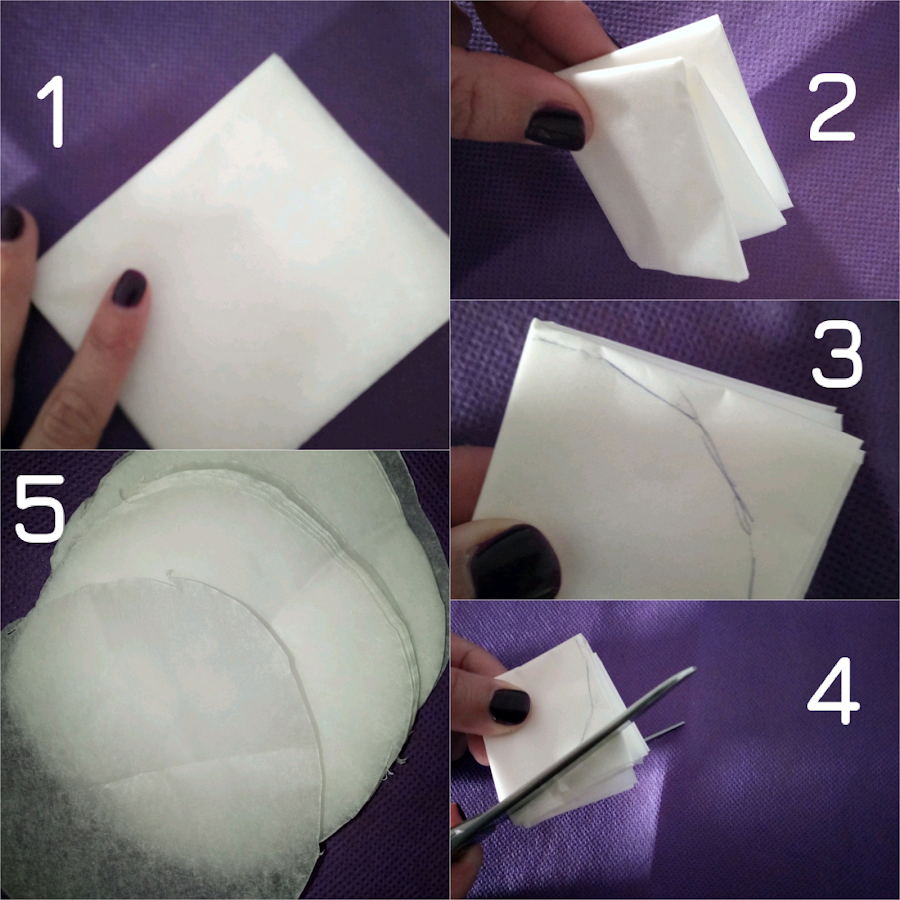 1. Doblamos varias veces la hoja de papel de horno hasta obtener una medida donde quepa una naranja (un cuadrado de 7*7 aprox)