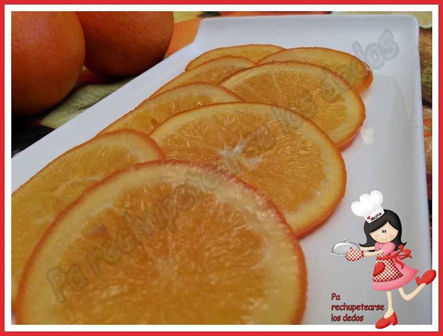 Preparación:- Lava bien las naranjas.y córtalas en rodajas finas.