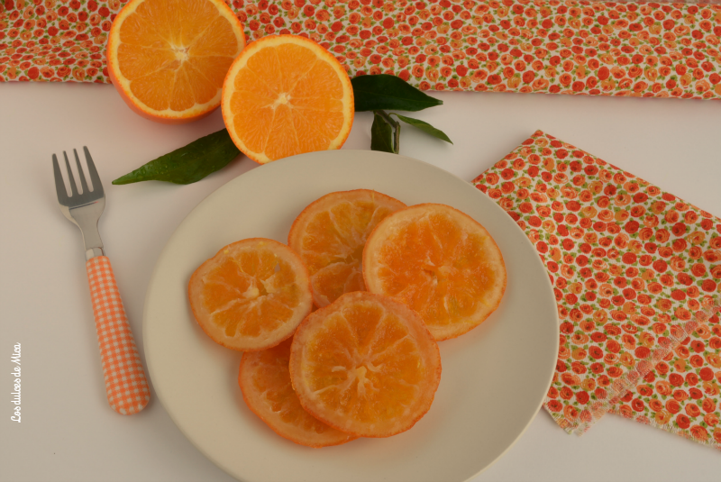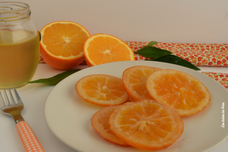 Yo he hecho la prueba con naranjas que son las más populares y las que más salida tienen como ingrediente y/o adorno de otros dulces y qué te voy a decir ..., están buenísimas, tanto que unas cuantas rodajas me las comí así, tal cual, no necesitan ningún acompañamiento.