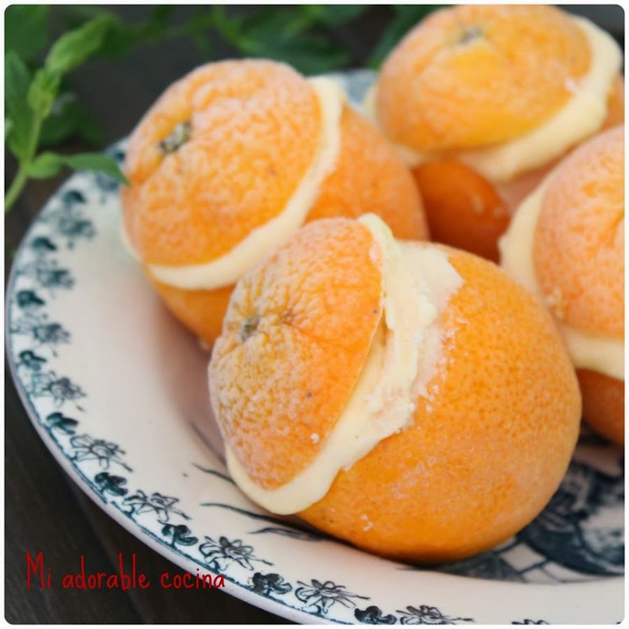 .Rellenamos las naranjas del helado congelado y guardamos en el congelador. A los niños les encanta y si no probar y me contáis!