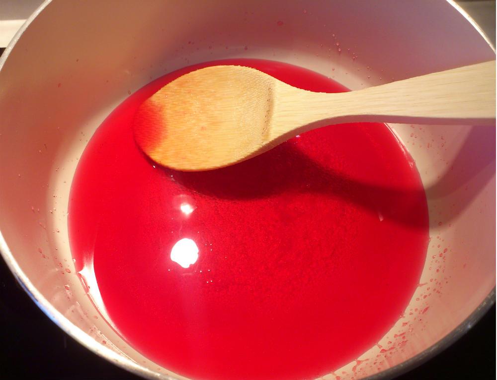 1. Para empezar y que de tiempo a que se enfríe un poco, preparamos la gelatina. En este caso simplemente hay que seguir los pasos que nos marca el fabricante en la caja. Es muy fácil y rápida de hacer. Una vez que la tenemos lista, apartamos el cazo del fuego y la dejamos enfriar.