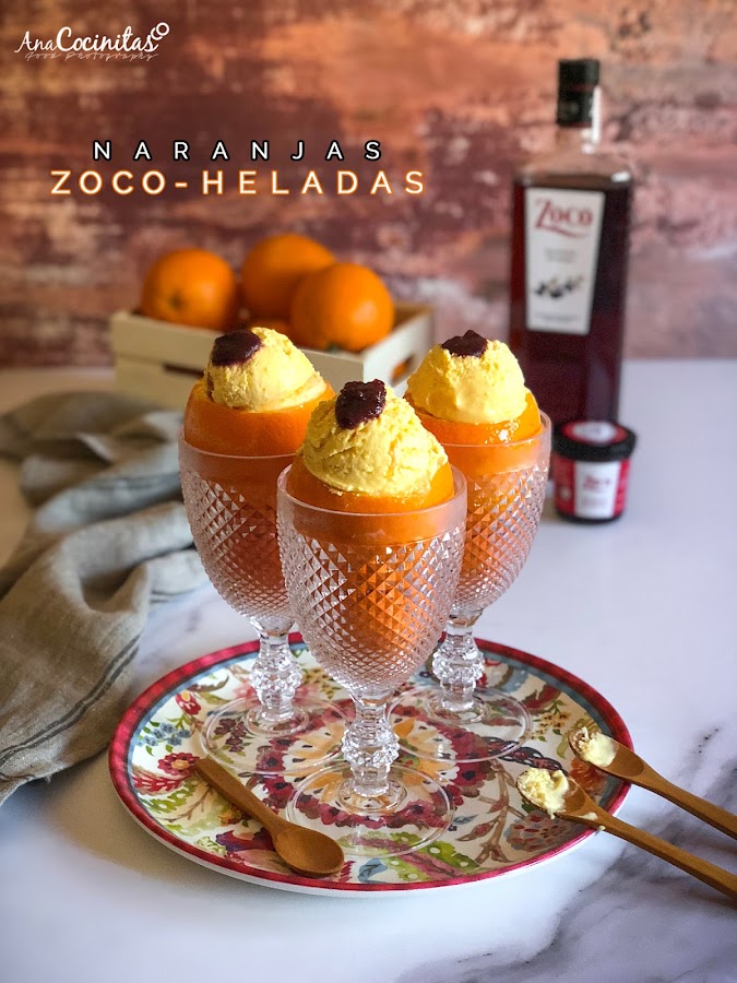 Las naranjas Zoco-Heladas son la versión de un postre súper tradicional y conocido pero con un punto diferente, el del pacharán, que estoy segura que os va a gustar mucho. Además, a parte de ser muy fácil de hacer, seguro que os viene genial para amenizar las tardes calurosas de verano porque... ¿Quién va a poder resistirse a un helado como este?