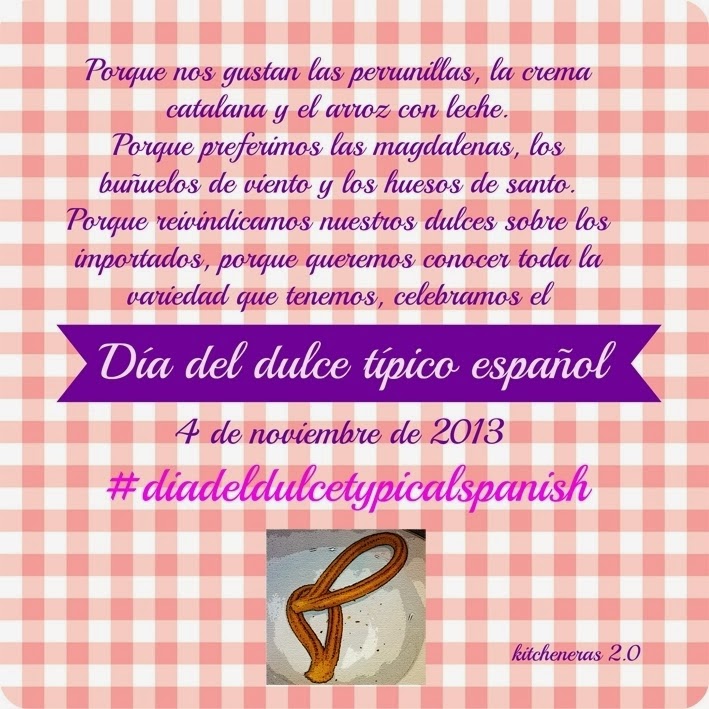 Esta idea nació de la manera más tonta, cansadas de que en nuestro país se adopten tradiciones y fiestas de países extranjeros, hemos decidido entre todas las que componemos este grupo, ensalzar y revalorizar los dulces tradicionales de nuestro país, de nuestras regiones y nuestras fiestas, si quieres ver las recetas que nos han mandado no tienes nada más que pinchar aquí y te llevara a nuestro nuevo blog ?LaCocina Typical Spanish? donde cada mes os lanzáremos una nueva propuesta para recuperar la cocina y gastronomía típica española.