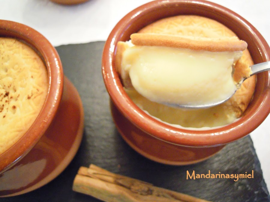 Hay otra forma más clásica de poner la galleta que es colocándola primero en la cazuelita y luego echando por encima las natillas, la galleta sube enseguida y se coloca encima, pero a mi me gusta más poniéndola al final....pero eso va a gustos.