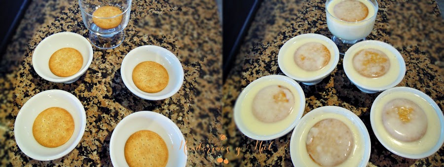 Otra cosa que te quiero comentar es la manera de poner la galleta, yo lo hago como lo hacía mi abuelita que es la que me enseñó; pongo primero en el cuenco la galleta y luego voy echando las natillas por encima, la galleta sube enseguida y se pone encima de las natillas; pero también te digo que puedes ponerla al final por encima de la natilla y ya está!!