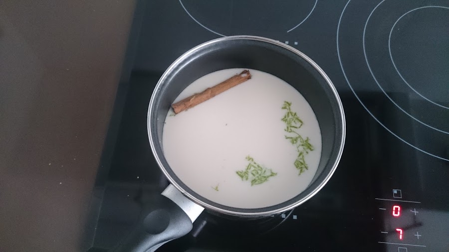 En primer lugar cogemos un cazo,vertemos la leche y ponemos a fuego medio, cuando empiece a hervir rallamos un limón dentro del cazo y colocamos una rama de canela y removemos, dejamos esto durante unos 5-6 minutos y apartamos del fuego, ahora tapamos el cazo y dejamos reposar para que se mezclen los sabores y que se enfríe la leche.