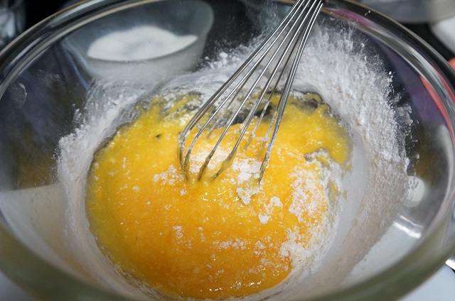 En un bol, ponemos las yemas, el azúcar y el almidón o la Maizena. Lo mezclamos.
