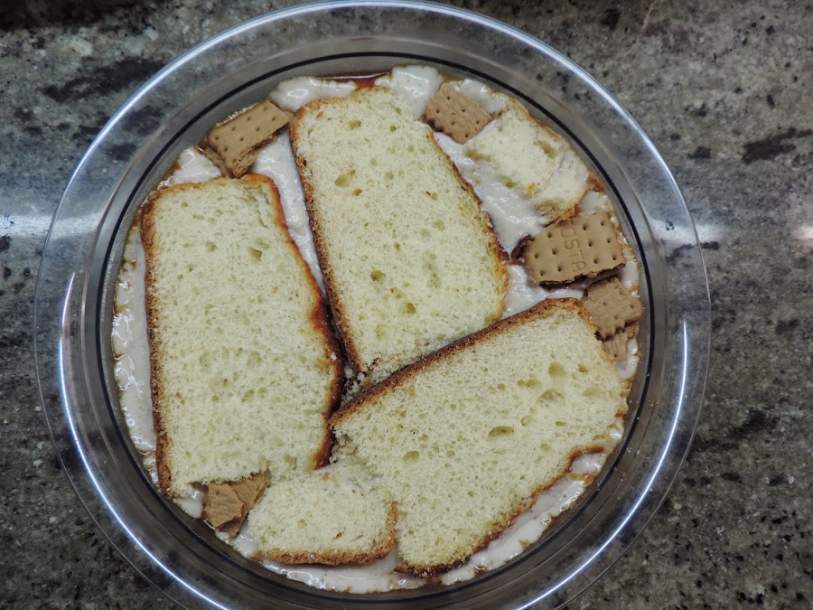Ponemos encima los trozos de monas y para cubrir los huecos he puesto unas galletas.
