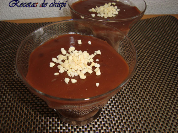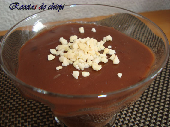 Poner la leche restante y la nata (crema de leche) al fuego junto con el cacao y el azúcar, y la vainilla, remover hasta que se disuelva todo.