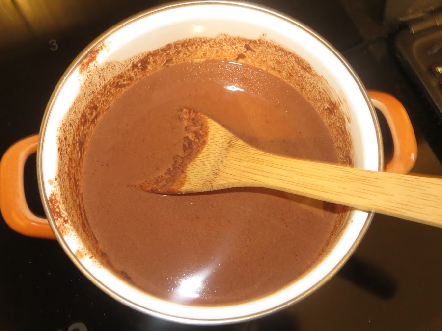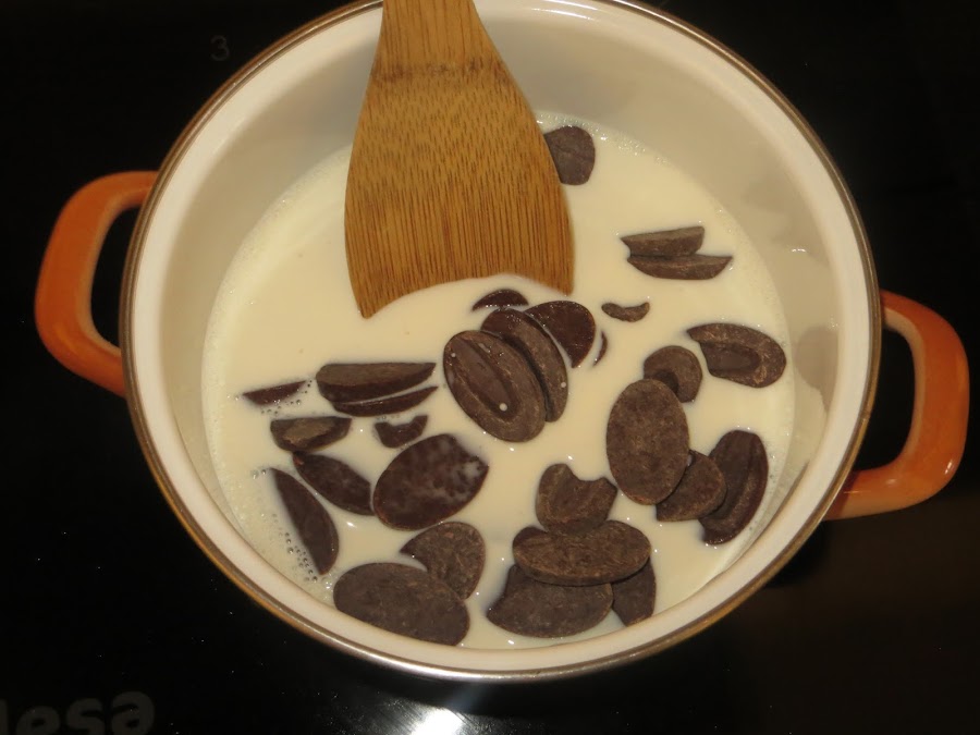 En un cazo, calentamos 300 mililitros de leche con el chocolate hasta que se funda a fuego suave. Cuando el chocolate ya esté disuelto, echamos el azúcar y le damos varias vueltas.