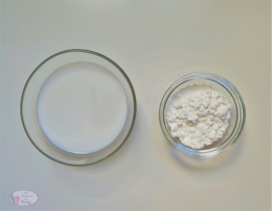 - Cogemos un vaso de la leche infusionada y ponemos dentro el almidón de maíz. Removemos bien bien bien para que no queden grumos.