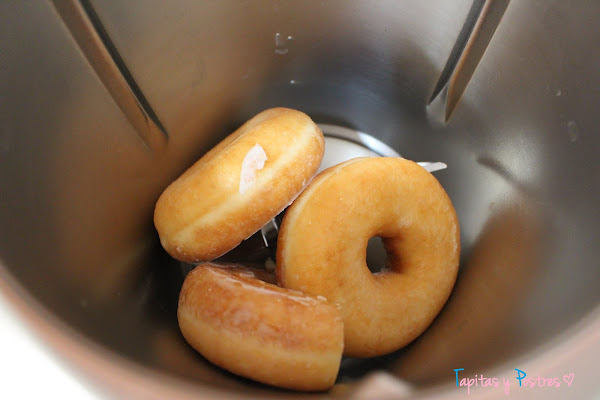 Ponemos los dos donuts y medio en el vaso de la thermomix y trituramos 5 segundos a velocidad 8.