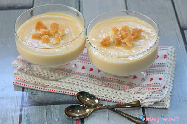 Al acabar vertemos en los vasos o recipientes y dejamos enfriar. Adornamos con trocitos del medio donut que habíamos reservado.